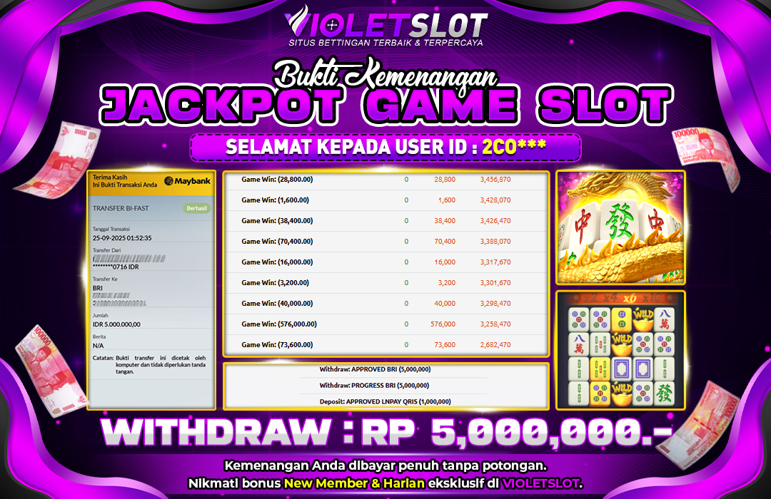 Selamat Kepada Member UNGUTOTO R******1 Telah Jackpot Di GAME SLOT MAHJONG WAYS