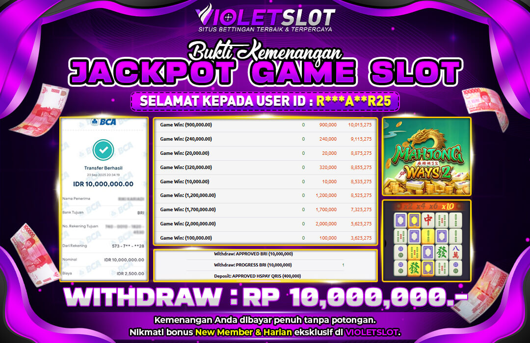Selamat Kepada Member UNGUTOTO R****5 Telah Jackpot Di MAHJONG WAYS