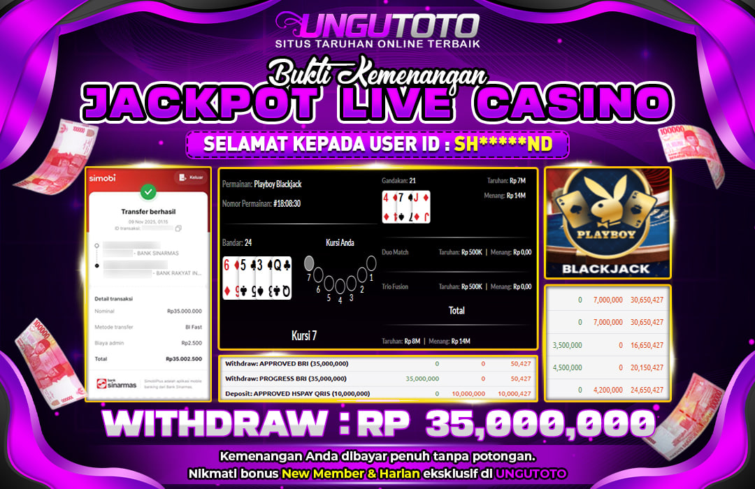 UNGUTOTO JACKPOT PLAYBOY BLACK JACK Rp.35.000.000 LUNAS