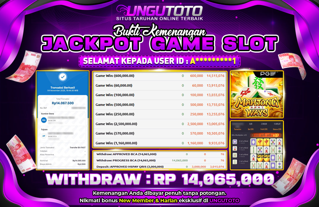 UNGUTOTO JACKPOT MAHJONG WAYS Rp.14.065.000 LUNAS