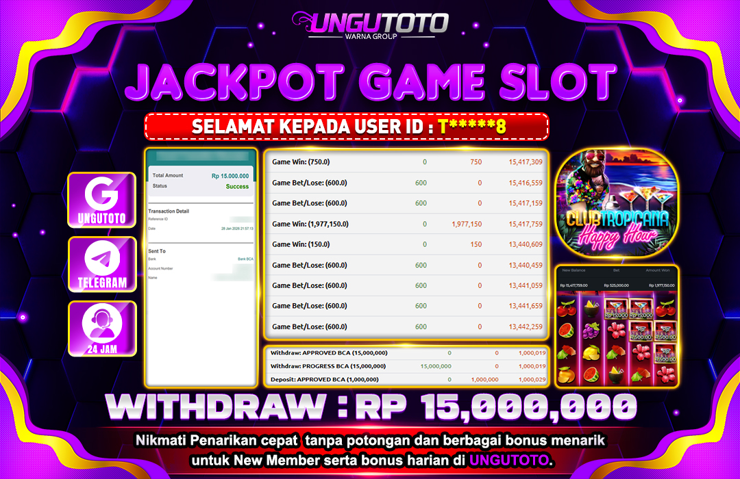 UNGUTOTO JACKPOT CLUB TROPICANA HAPPY HOUR Rp.15.000.000 LUNAS