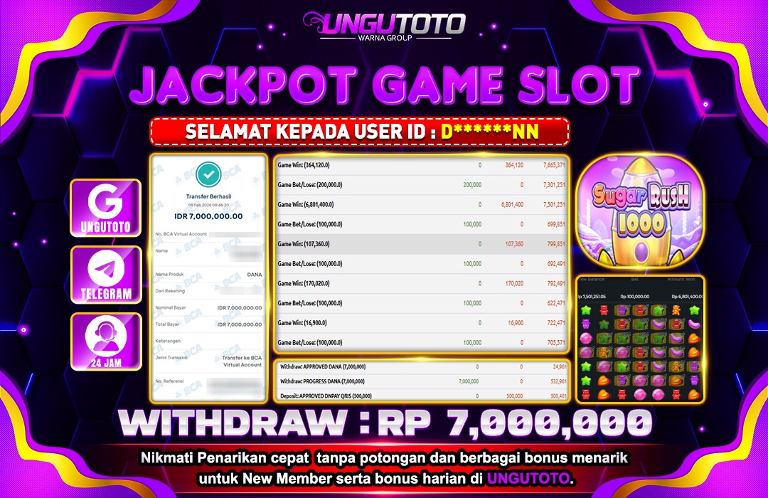 UNGUTOTO JACKPOT SUGAR RUSH 1000 Rp.7.000.000 LUNAS