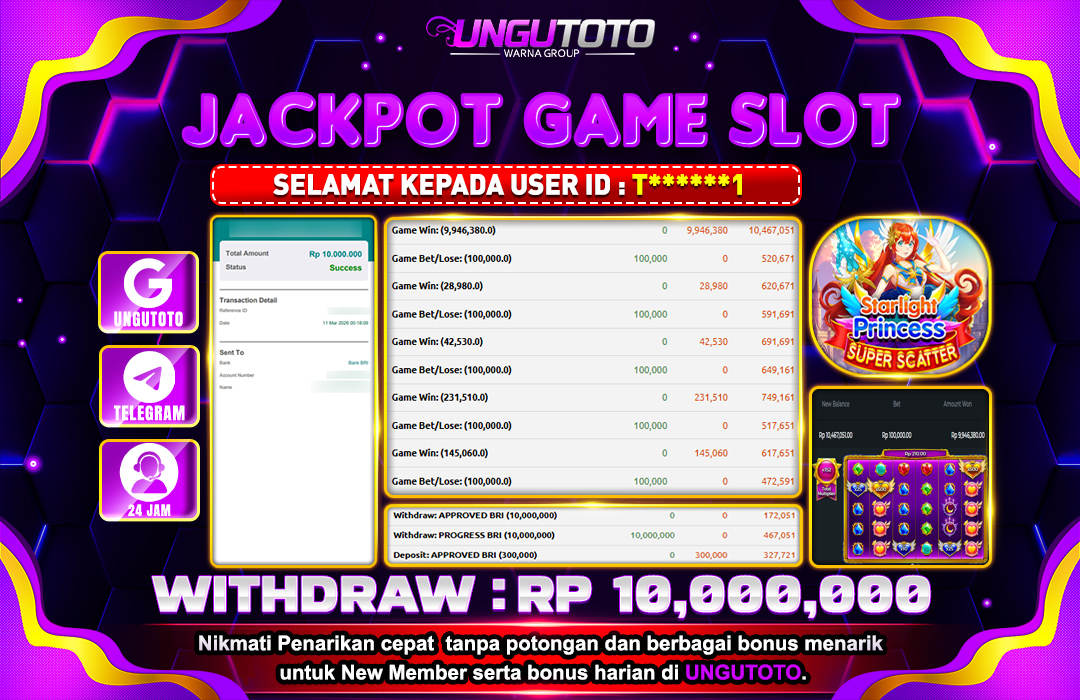 UNGUTOTO JACKPOT STARLIGHT PRINCESS SUPER SCATTER Rp.10.000.000 LUNAS