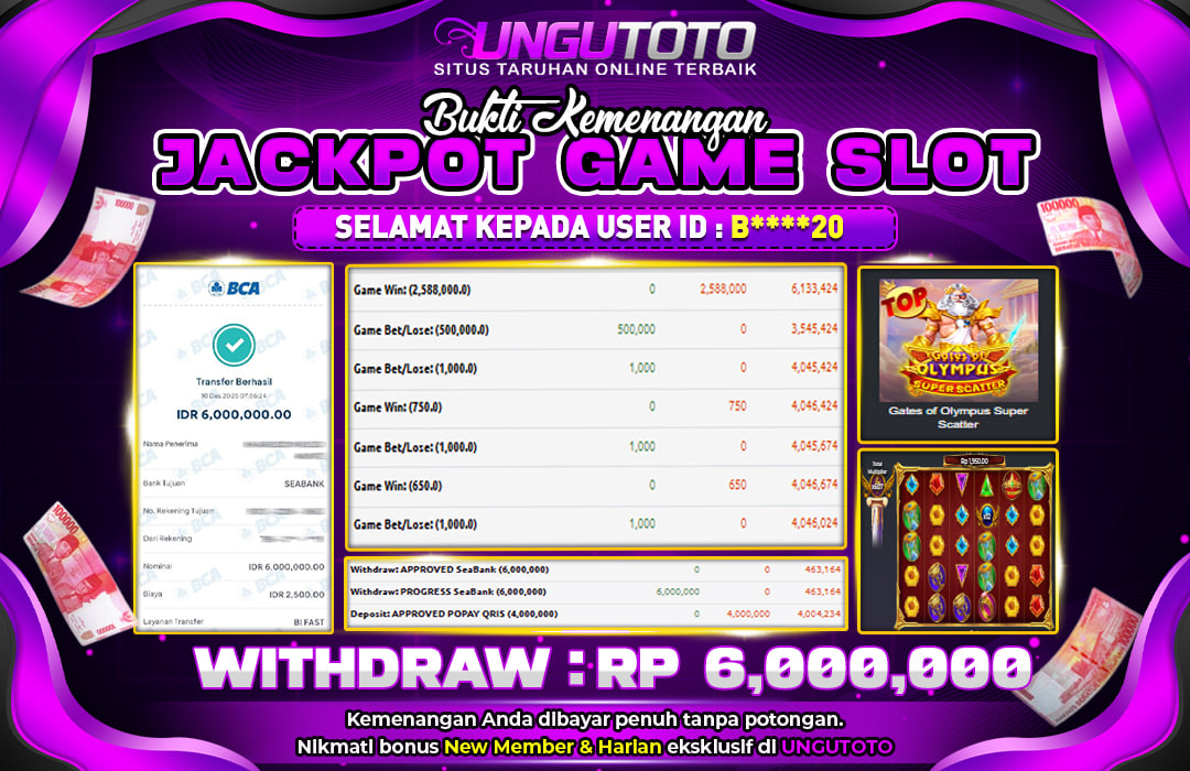 UNGUTOTO JACKPOT GATES OF OLYMPUS SUPER SCATTER Rp.6.000.000 LUNAS
