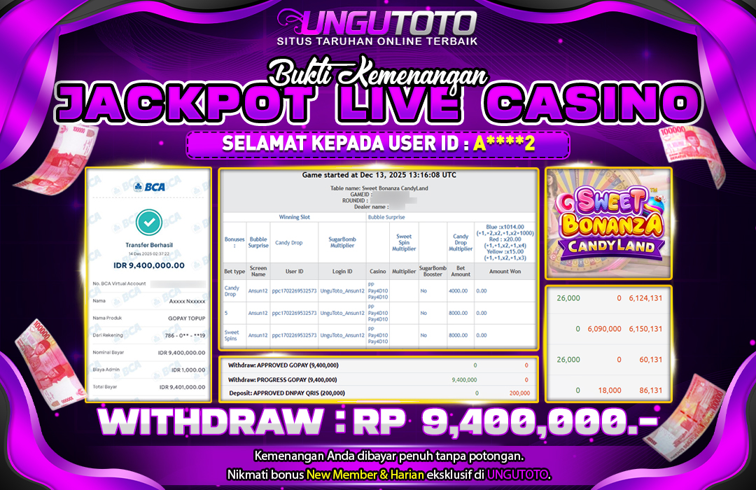 UNGUTOTO JACKPOT SWEET BONANZA CANDYLAND Rp.9.400.000 LUNAS