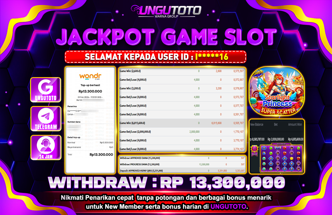 UNGUTOTO JACKPOT STARLIGHT PRINCESS SUPER SCATTER Rp.13.300.000 LUNAS
