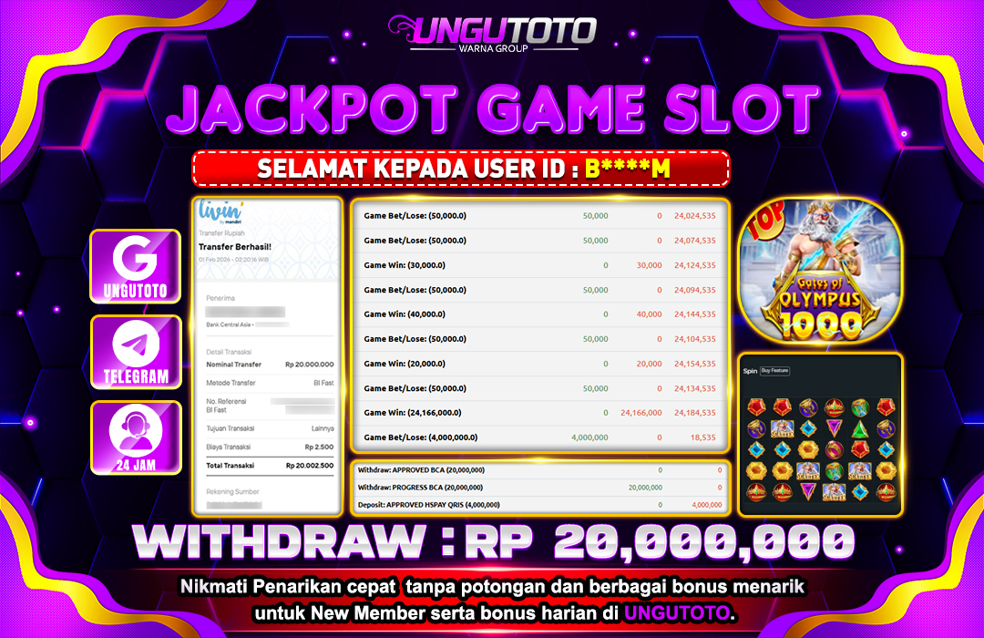 UNGUTOTO JACKPOT GATES OF OLYMPUS 1000 Rp.20.000.000 LUNAS