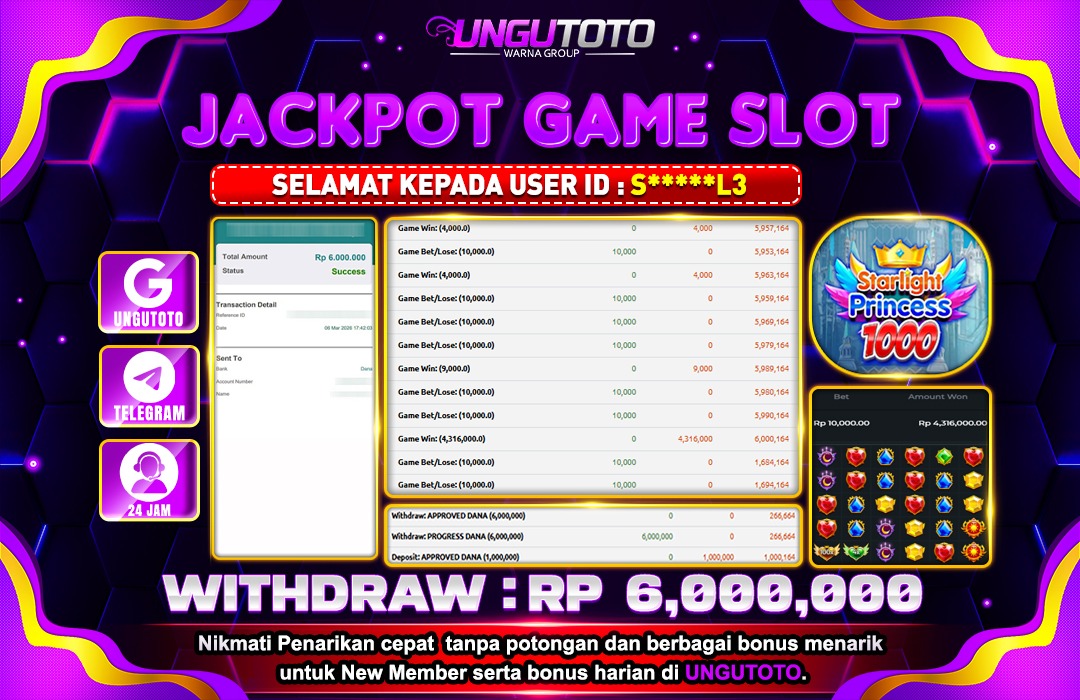 UNGUTOTO JACKPOT STARLIGHT PRINCES 1000 Rp.6.000.000 LUNAS