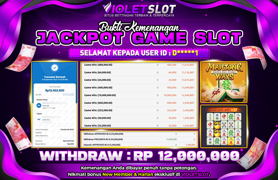 Selamat Kepada Member UNGUTOTO D****1 Telah Jackpot Di MAHJONG WAYS