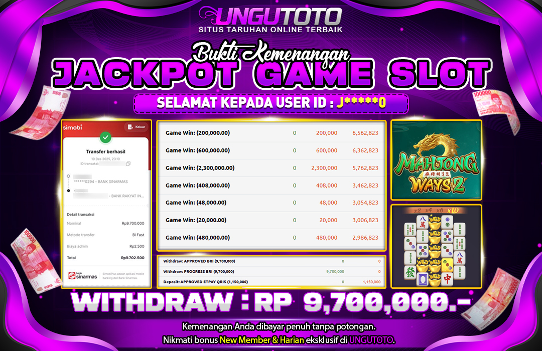 UNGUTOTO JACKPOT MAHJONG WAYS 2 Rp.9.700.000 LUNAS