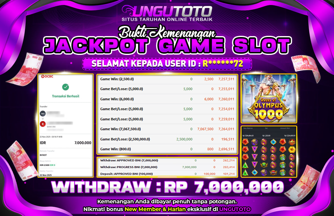 UNGUTOTO JACKPOT GATES OF OLYMPUS 1000 Rp.7.000.000 LUNAS