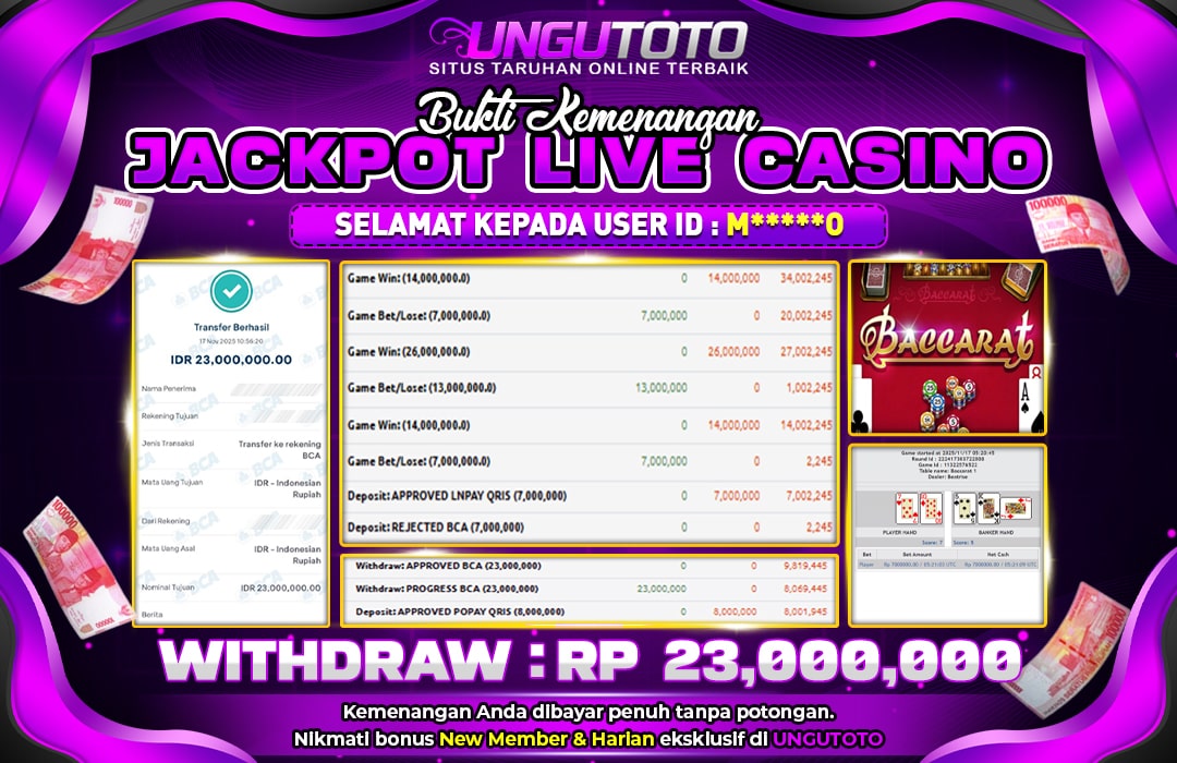 UNGUTOTO JACKPOT BACCARAT Rp.23.000.000 LUNAS