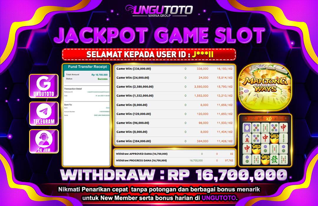 UNGUTOTO JACKPOT PG SOFT SLOT MAHJONG WAYS Rp.16.700.000 LUNAS