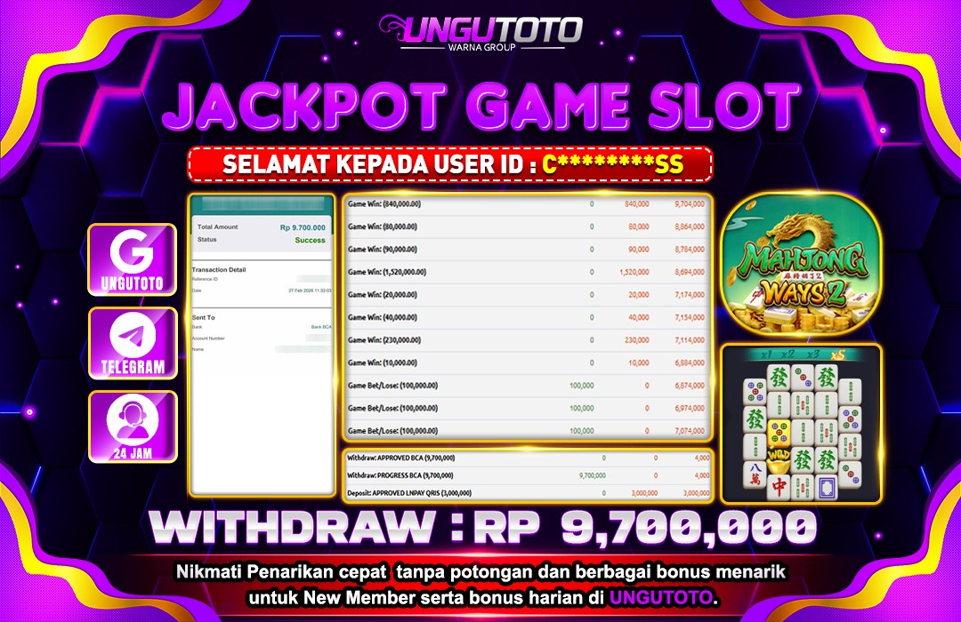 Selamat Kepada Member UNGUTOTO C********SS Telah Jackpot Di MAHJONG WAYS2