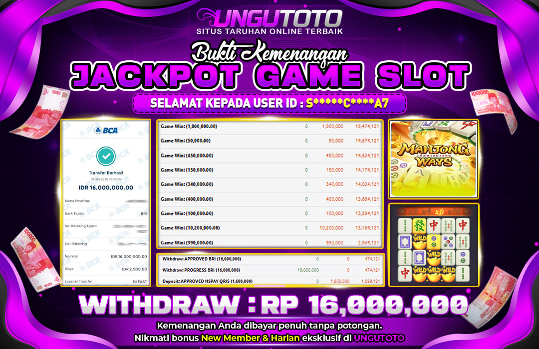 UNGUTOTO JACKPOT MAHJONG WAYS Rp.16.000.000 LUNAS