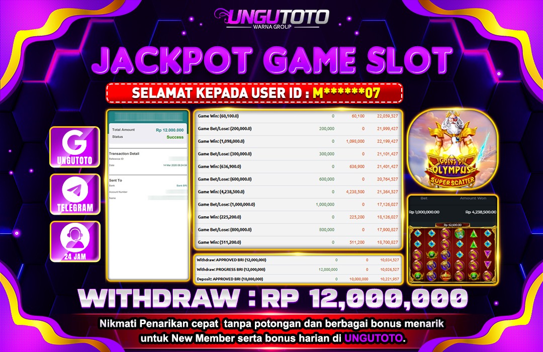 Selamat Kepada Member UNGUTOTO M⭑⭑⭑***⭑⭑07 Telah Jackpot Di GATES OF OLYMPUS 1000
