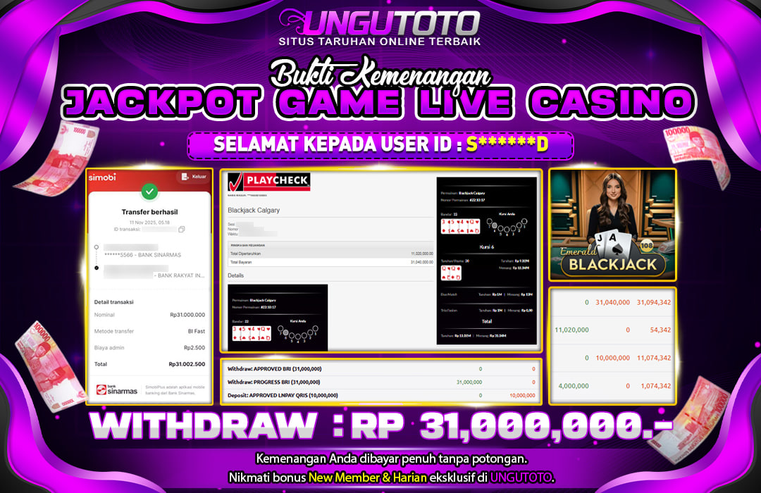 UNGUTOTO JACKPOT EMERALD BLACKJACK Rp.31.000.000 LUNAS