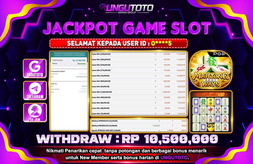 UNGUTOTO JACKPOT MAHJONG WAYS Rp.10.500.000 LUNAS