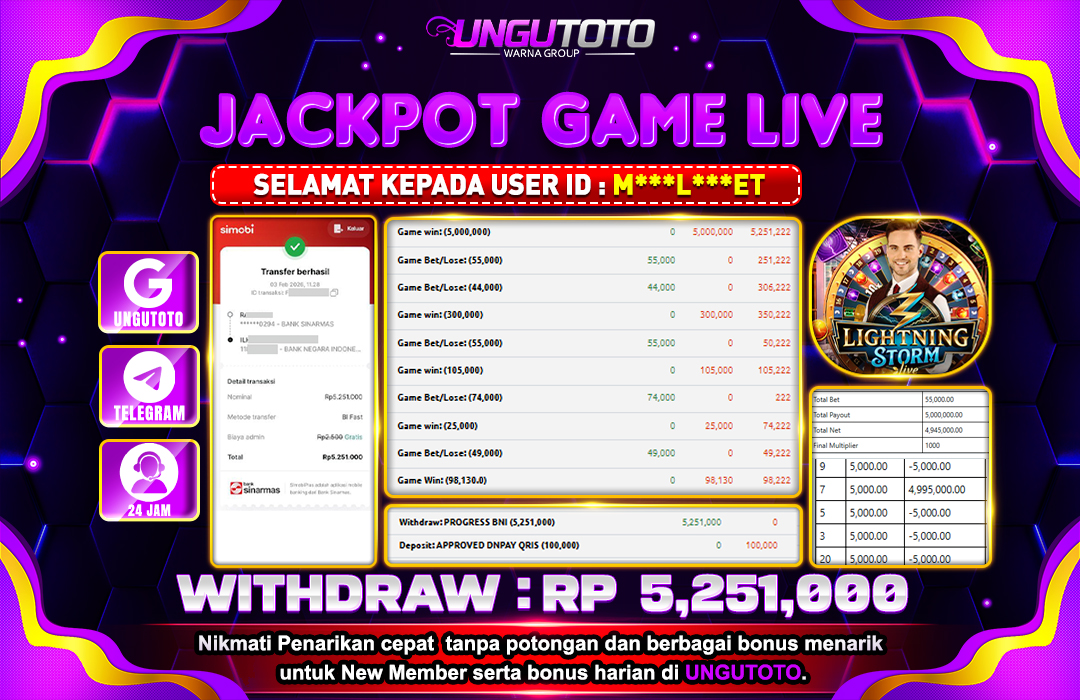UNGUTOTO JACKPOT LIVE EVO LIGHTNING STORM Rp.5.251.000 LUNAS