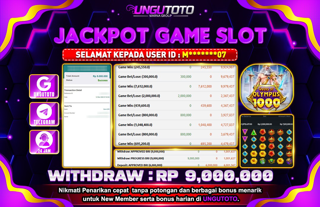 UNGUTOTO JACKPOT GATES OF OLYMPUS 1000 Rp.9.000.000 LUNAS