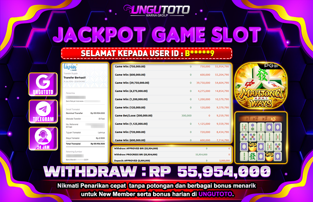 UNGUTOTO JACKPOT MAHJONG WAYS Rp.55.954.000 LUNAS