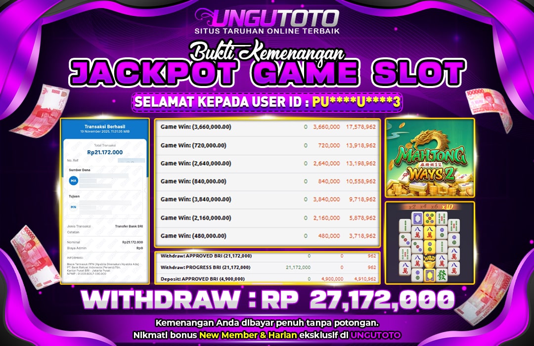 UNGUTOTO JACKPOT MAHJONG WAYS 2 Rp.27.172.000 LUNAS