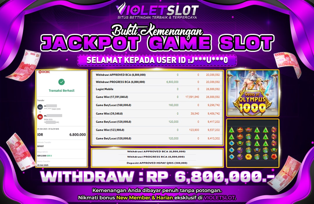 UNGUTOTO JACKPOT GATES OF OLYMPUS 1000 Rp.6.800.000 LUNAS