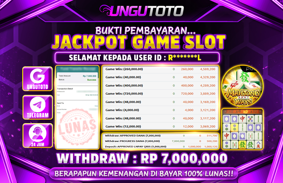 UNGUTOTO JACKPOT MAHJONG WAYS Rp.7.000.000 LUNAS