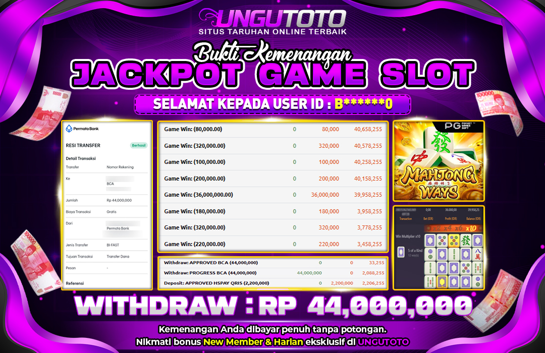 UNGUTOTO JACKPOT MAHJONG WAYS Rp.44.000.000 LUNAS
