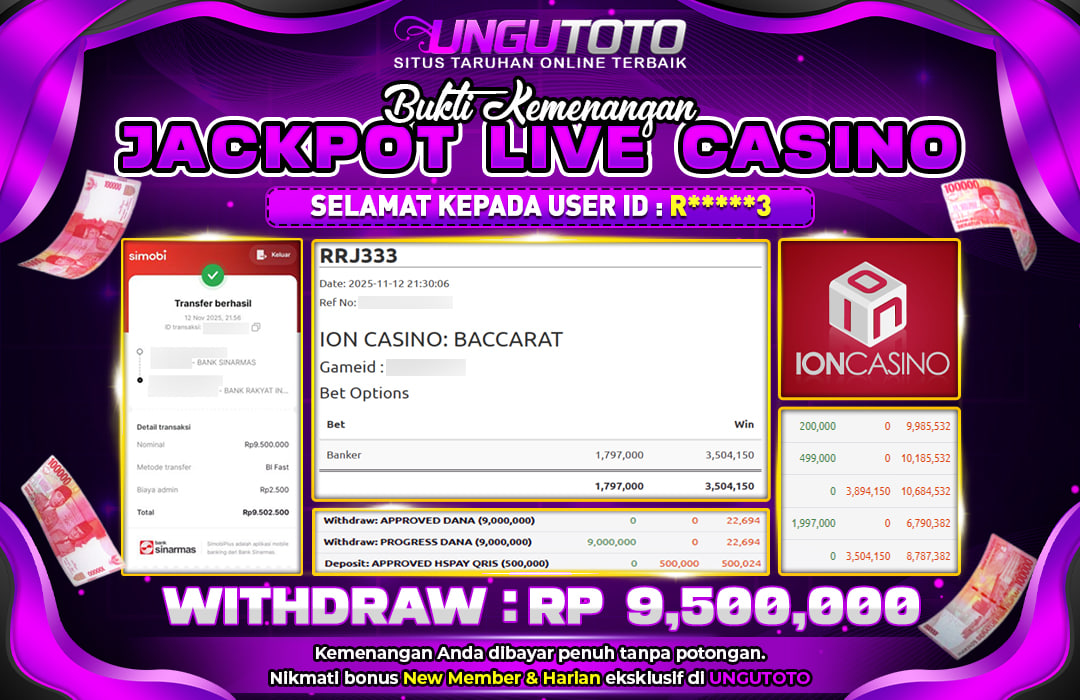 UNGUTOTO JACKPOT IONCASINO Rp.9.500.000 LUNAS
