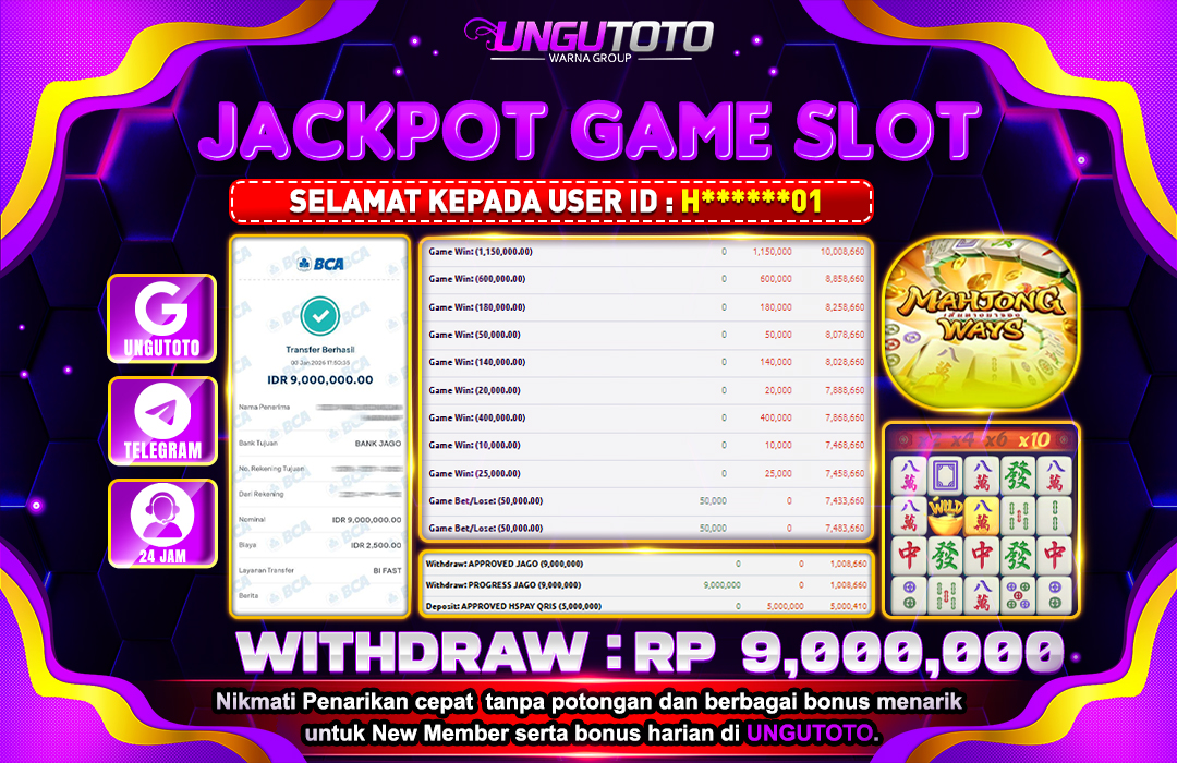 UNGUTOTO JACKPOT GAME SLOT MAHJONG WAYS Rp.10.000.000 LUNAS