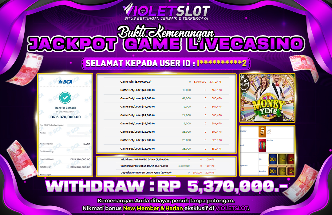 UNGUTOTO JACKPOT LIVE CASINO | PRAGMATIC | MONEY TIME Rp.5.370.000 LUNAS