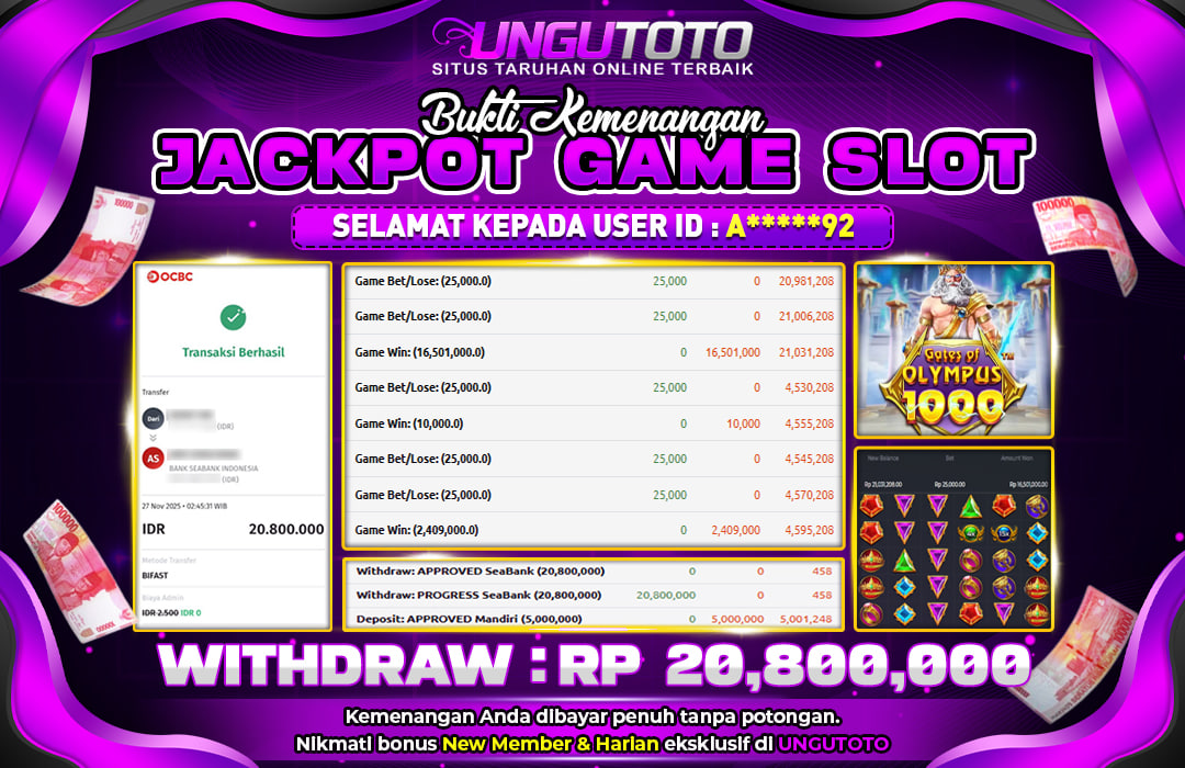 UNGUTOTO JACKPOT GATES OF OLYMPUS 1000 Rp.20.800.000 LUNAS