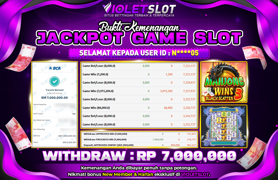 UNGUTOTO JACKPOT MAHJONG WINS 3 BLACK SCATTER Rp.7.000.000 LUNAS