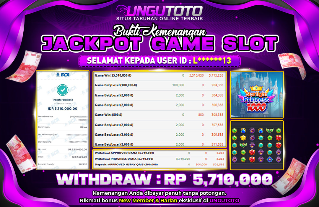 UNGUTOTO JACKPOT STARLIGHT PRINCESS 1000 Rp.5.710.000 LUNAS