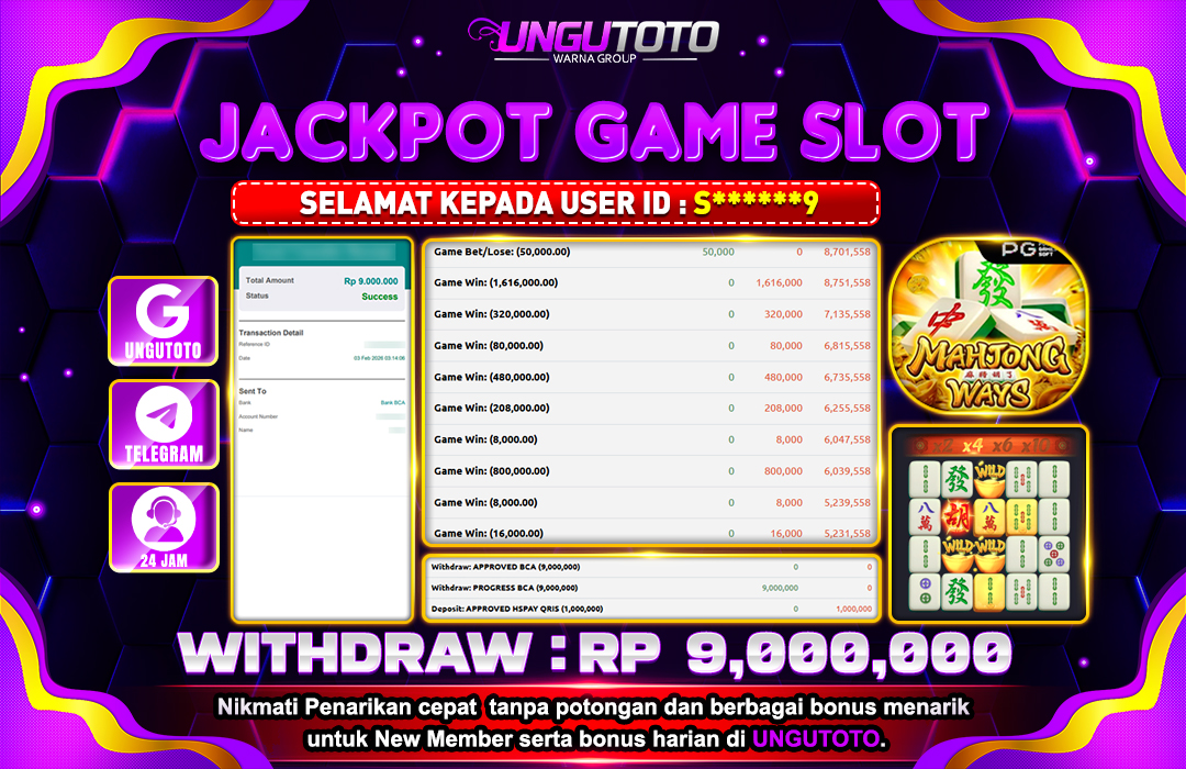UNGUTOTO JACKPOT MAHJONG WAYS Rp.9.000.000 LUNAS