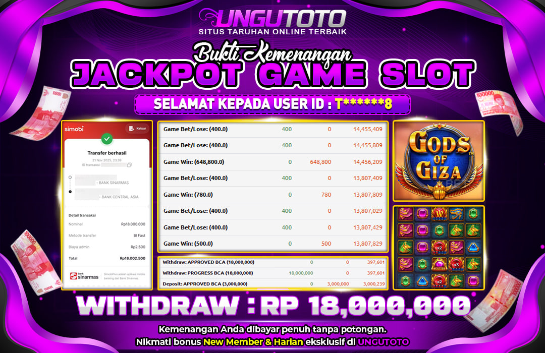 UNGUTOTO JACKPOT GODS OF GIZA Rp.18.000.000 LUNAS