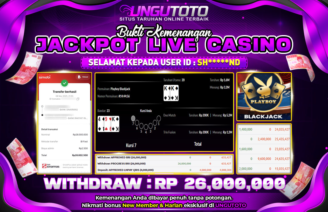 UNGUTOTO JACKPOT PLAYBOY BLACK JACK Rp.26.000.000 LUNAS
