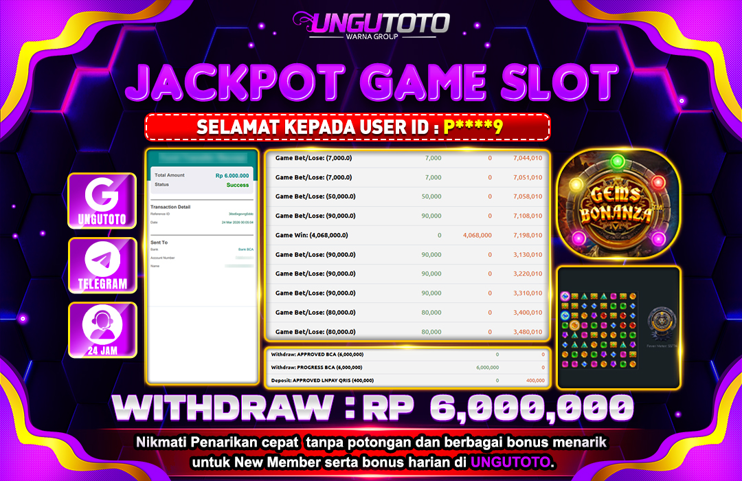 UNGUTOTO JACKPOT GEMS BONANZA Rp.6.000.000 LUNAS
