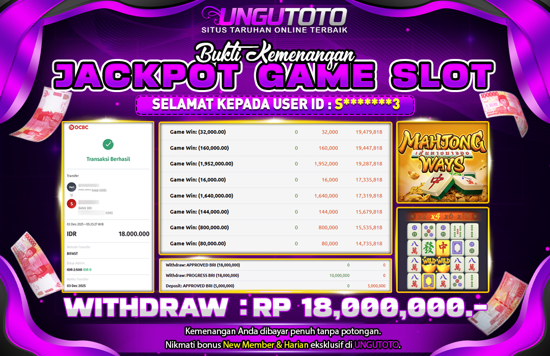 UNGUTOTO JACKPOT MAHJONG WAYS Rp.18.000.000 LUNAS