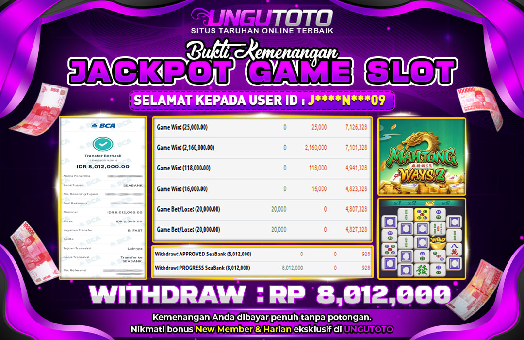 Sudah banyak yang buktiin sendiri—UNGUTOTO konsisten bayar semua kemenangan member, berapapun nominalnya. Transparan, aman, dan dijamin tuntas. 💯🔒