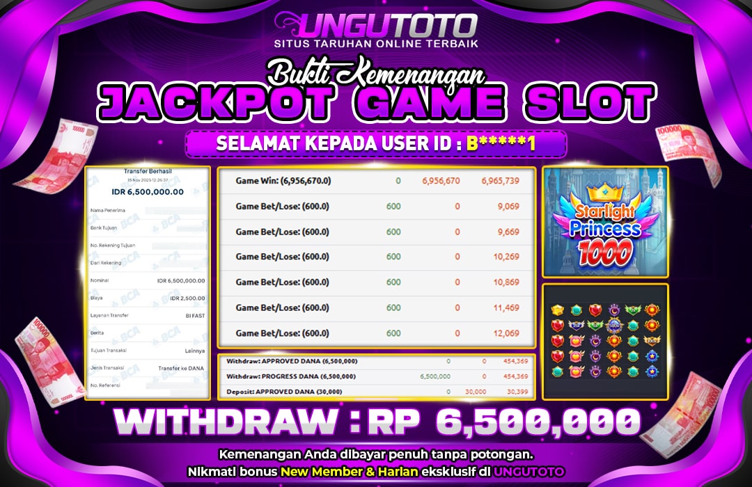 Selamat Kepada Member UNGUTOTO B*****1 Telah Jackpot Di STARLIGHT PRINCESS 1000