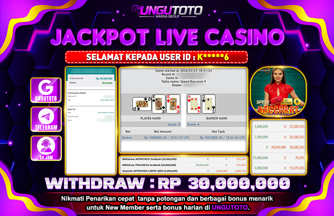 UNGUTOTO JACKPOT SPEED BACCARAT 9 Rp.30.000.000 LUNAS