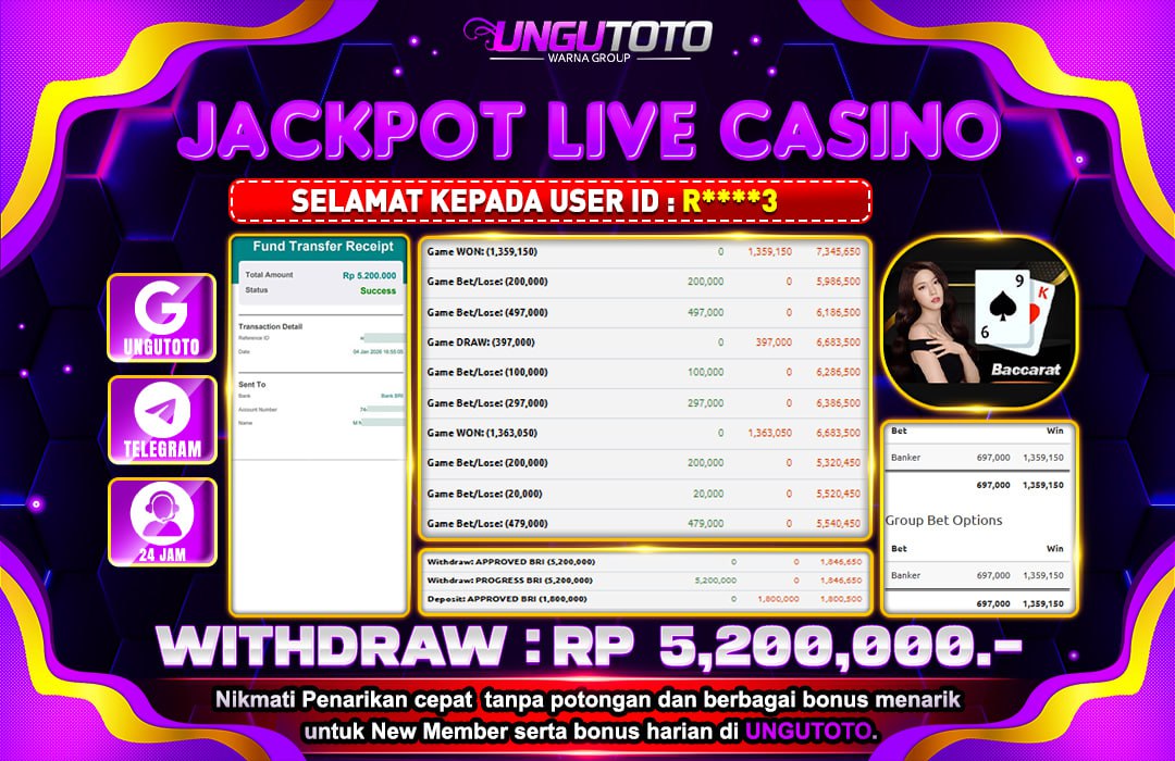 UNGUTOTO JACKPOT LIVECASINO ION BACARAT Rp.5.200.000 LUNAS
