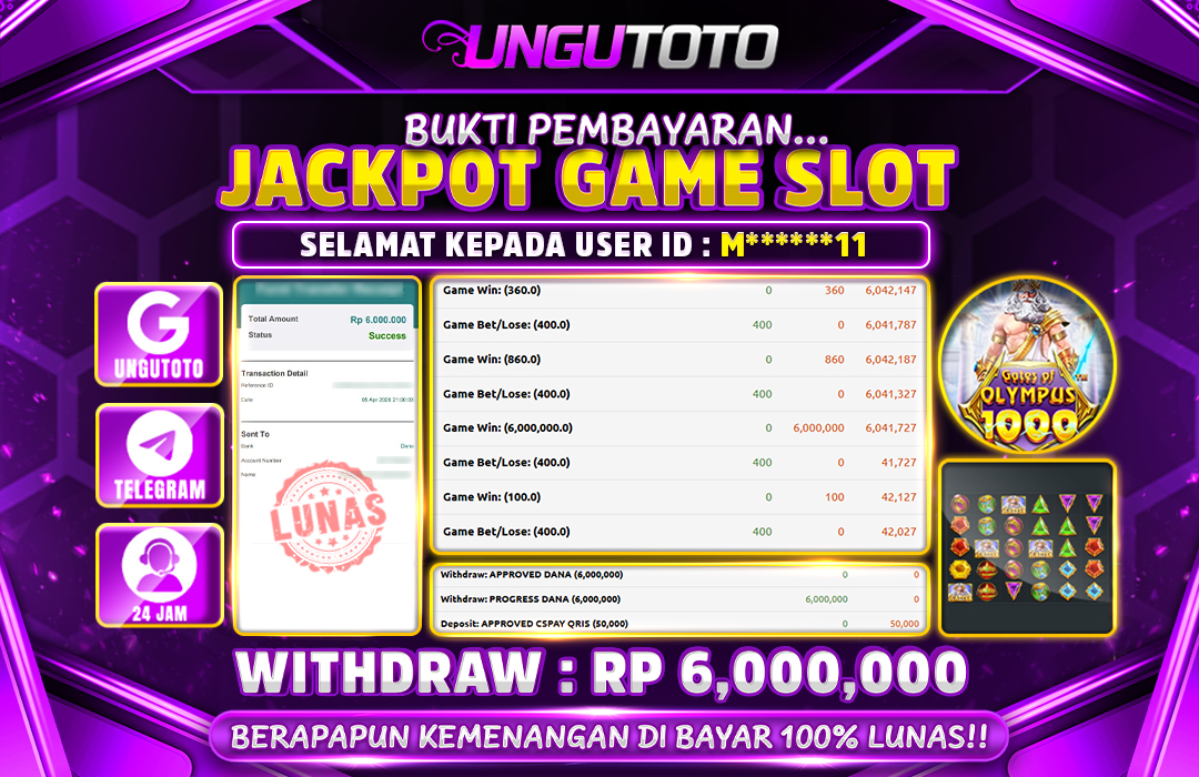 UNGUTOTO JACKPOT GATES OF OLYMPUS 1000 Rp.6.000.000 LUNAS