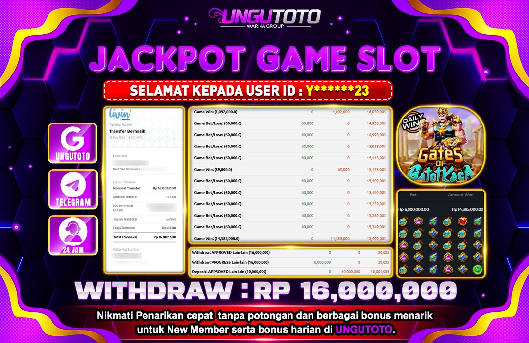 UNGUTOTO JACKPOT GATES GATOT KACA Rp.16.000.000 LUNAS