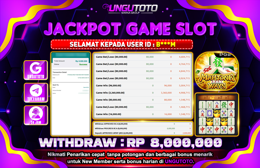 UNGUTOTO JACKPOT MAHJONG WAYS Rp.8.000.000 LUNAS