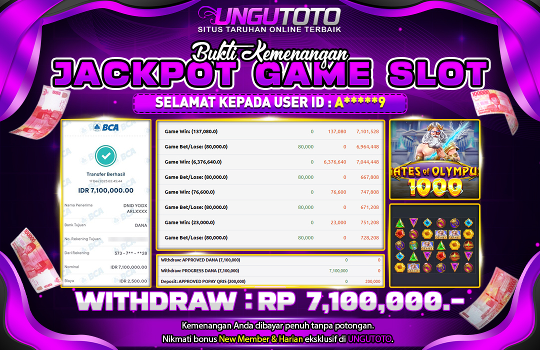 UNGUTOTO JACKPOT GATES OF OLYMPUS 1000 Rp.7.100.000 LUNAS