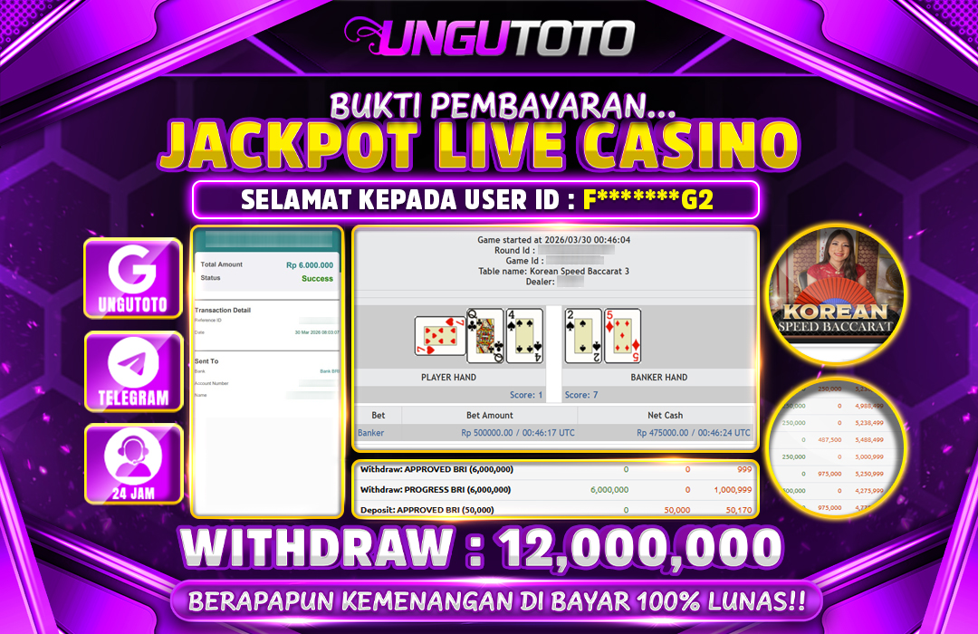 UNGUTOTO JACKPOT KOREAN SPEED BACCARAT Rp.12.000.000 LUNAS