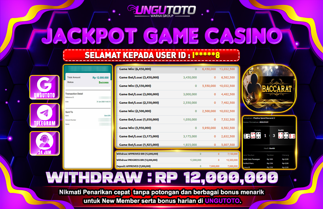 UNGUTOTO JACKPOT LIVE CASINO BACCARAT Rp.12.000.000 LUNAS
